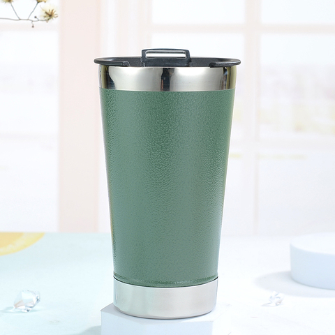 Logotipo personalizado aislado al vacío 16oz 304 jarra de cerveza de acero inoxidable de doble pared con abrebotellas