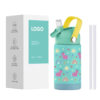 Botella de agua aislada de acero inoxidable de doble pared, 12 Oz, 350 Ml, termos escolares para niños con diseño moderno, termo de viaje con empuñadura