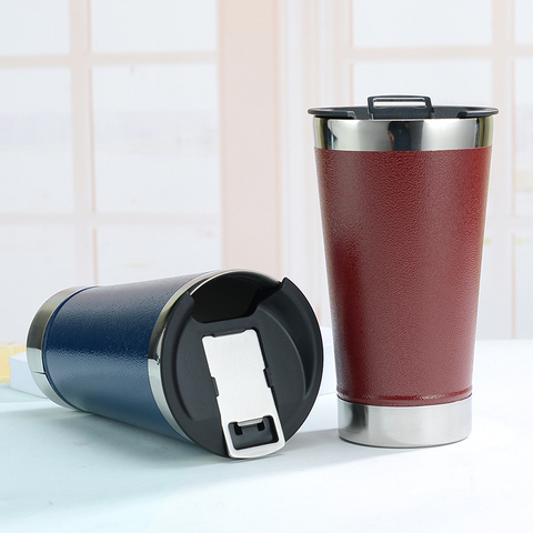 Commercio all'ingrosso bottiglia di acqua bocca larga tazza di caffè logo personalizzato tazza di auto in acciaio inox doppia parete tazze di birra con apribottiglie