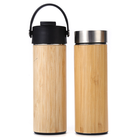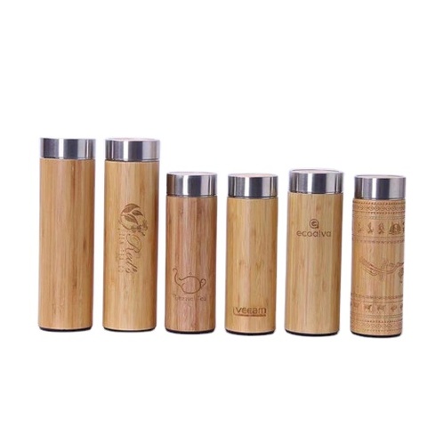 Promozionale BPA libero di disegno di bambù thermos in acciaio tazze di viaggio tazze di caffè su ordinazione bicchiere di bambù bottiglia di acqua